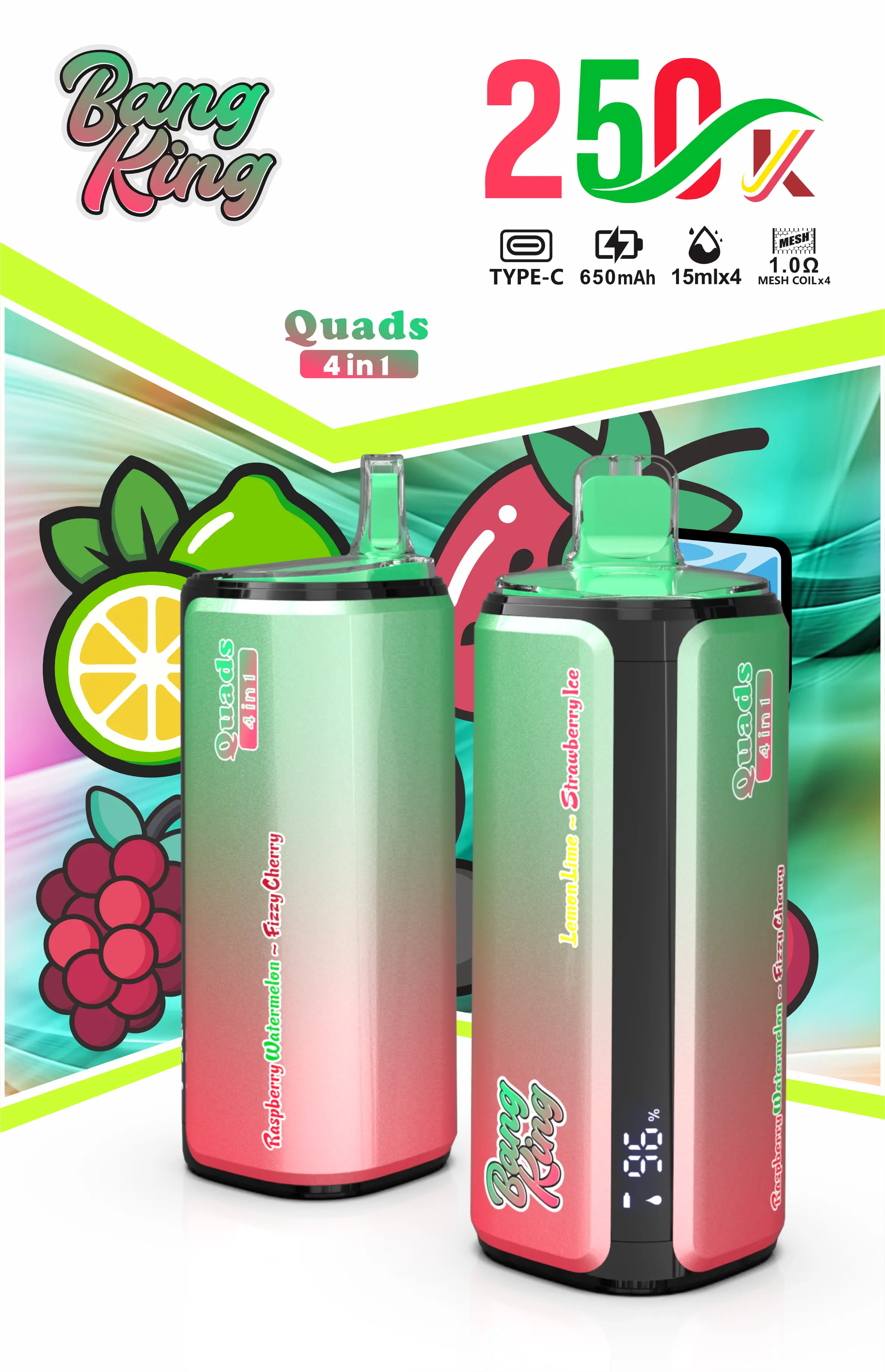 2.Lemon Lime / Strawberry Ice / Raspberry Watermelon / Fizy Cherry
