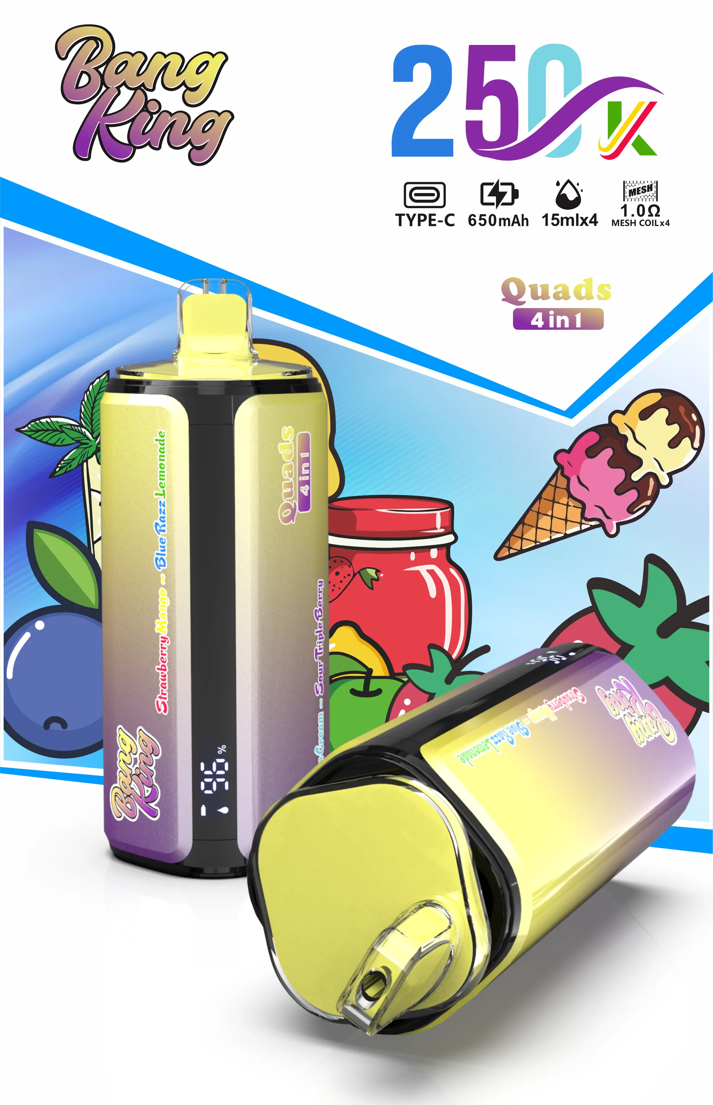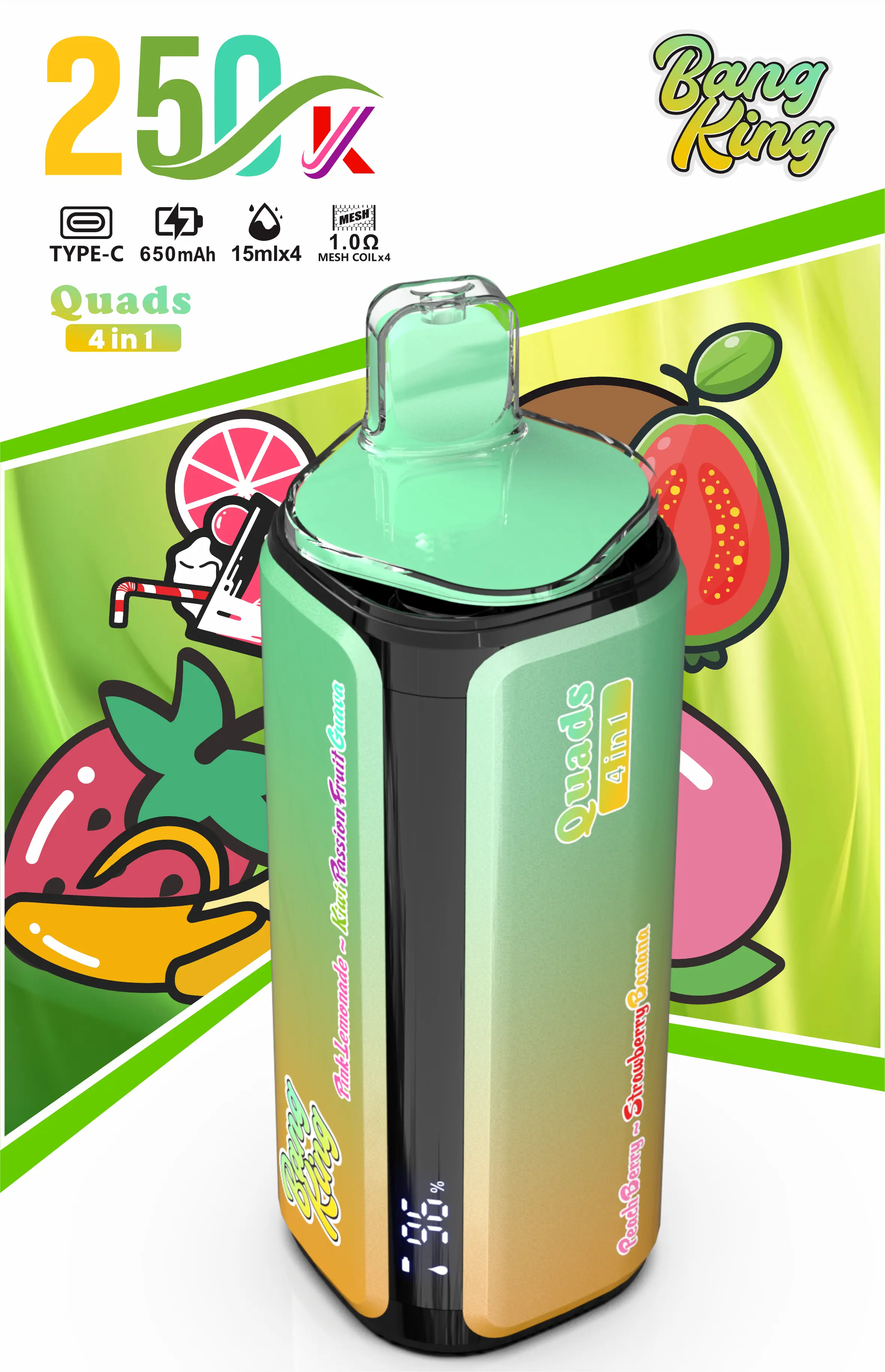4.Pink Lemonade / Kiwi Passion Fruit Guava / Peach Berry / Strawberry Banana