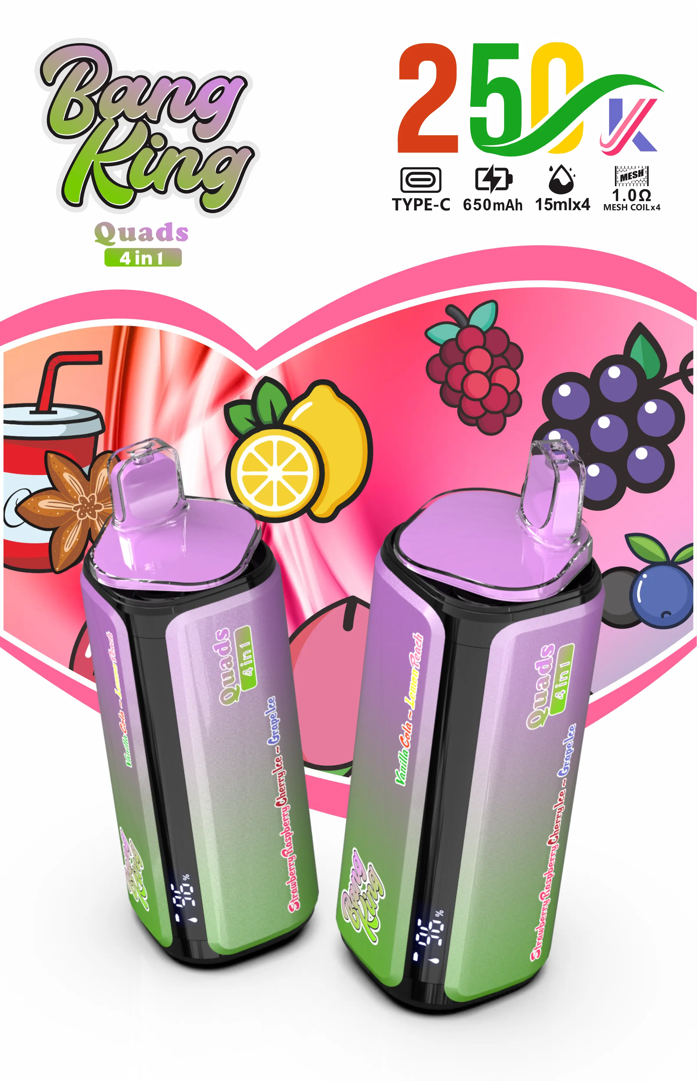 3.Vanilla Cola / Lemon Peach / Strawberry Raspberry Cherry Ice / Grape Ice